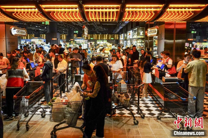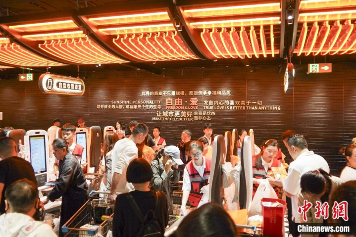胖东来超市蹧跶者列队结账。范晓恒摄