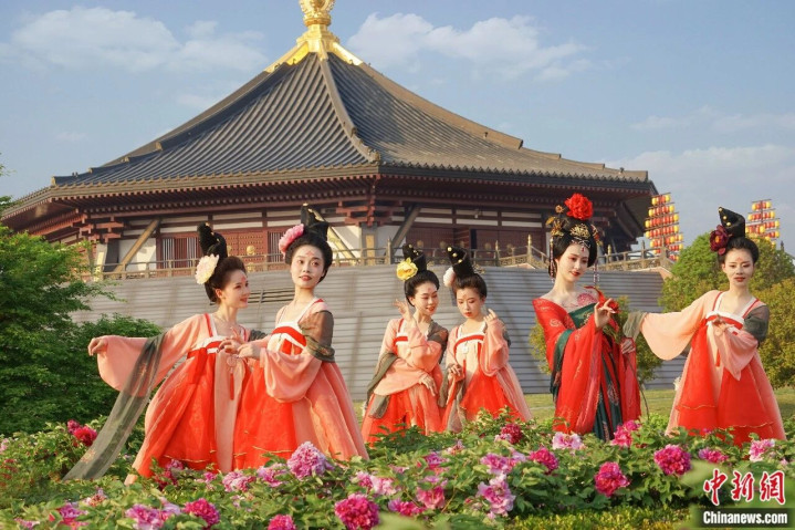 开封明朗上河园“大宋簪花游园会”眩惑搭客。袁航摄