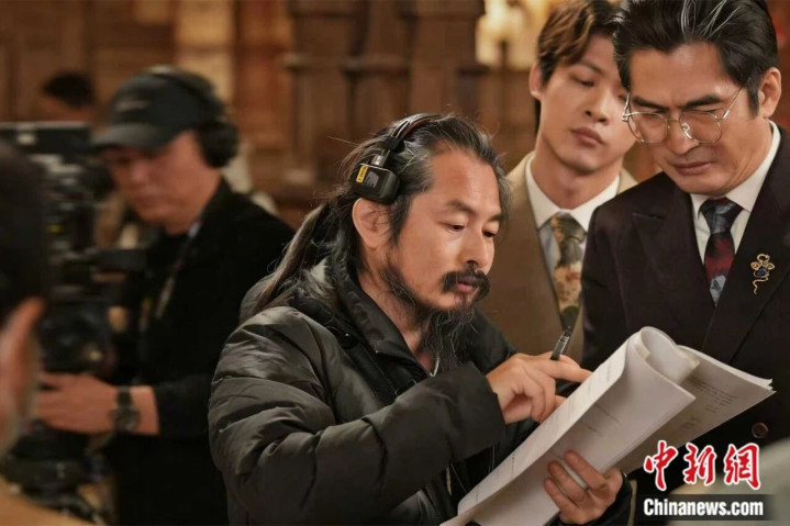 微短剧主创东谈主员雷同脚本。大志影视基地供图