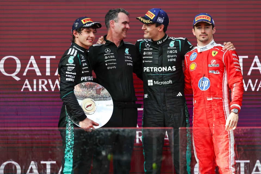 更令东说念主咋舌的是少壮安东内利,这位从第二位起步的年青车手,正赛初期一度因场地波动跌至第七位,却凭借梅奔能源单位的高效散热与能量回收系统稳步攀升,最终以沉静发扬守住亚军。