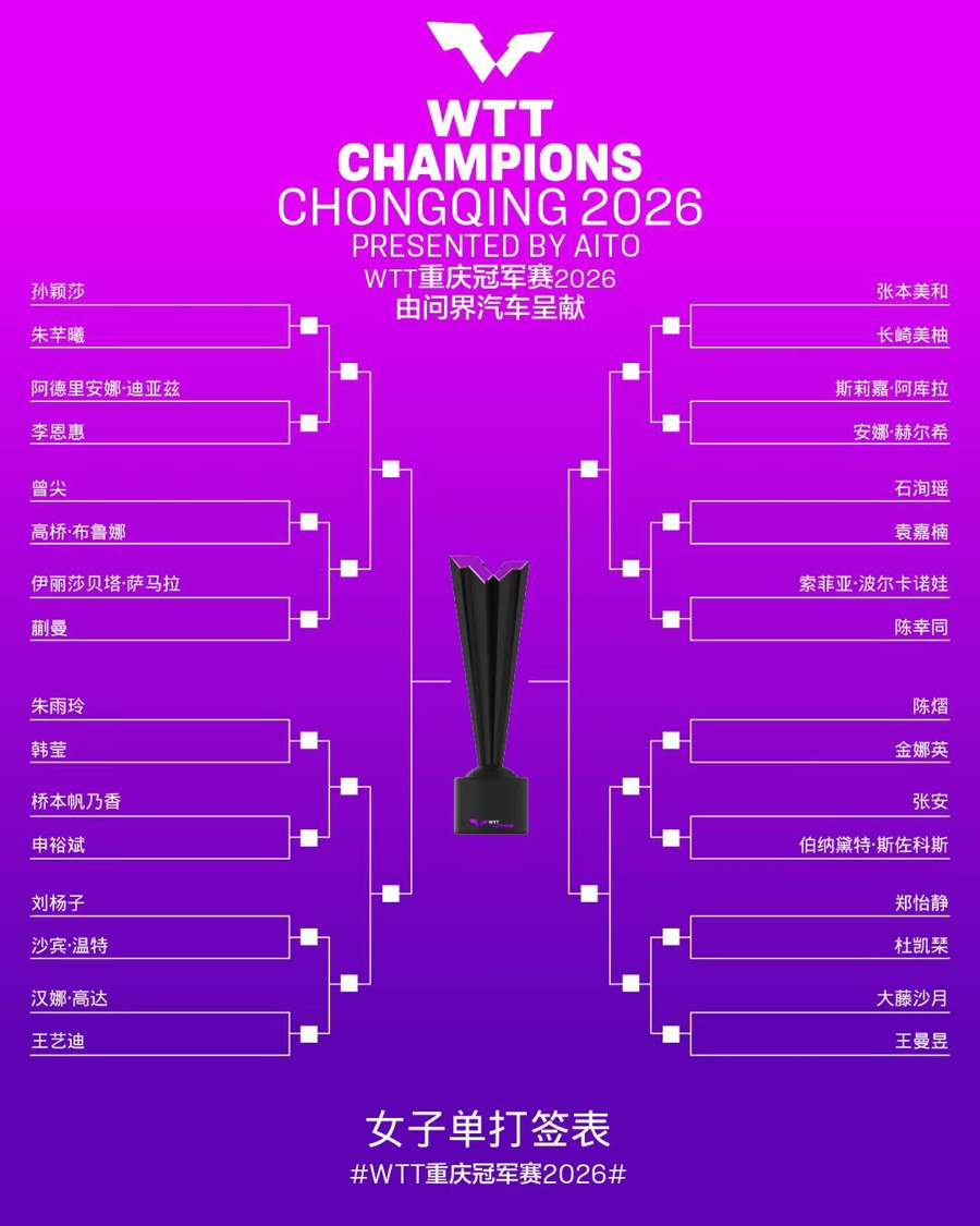 相较于男单的交加花式,女单赛场的签表相对辉煌,头号种子孙颖莎与二号种子王曼昱分辩坐镇凹凸半区,为决赛会师奠定了基础,但各区域的挑战相似辞让小觑。