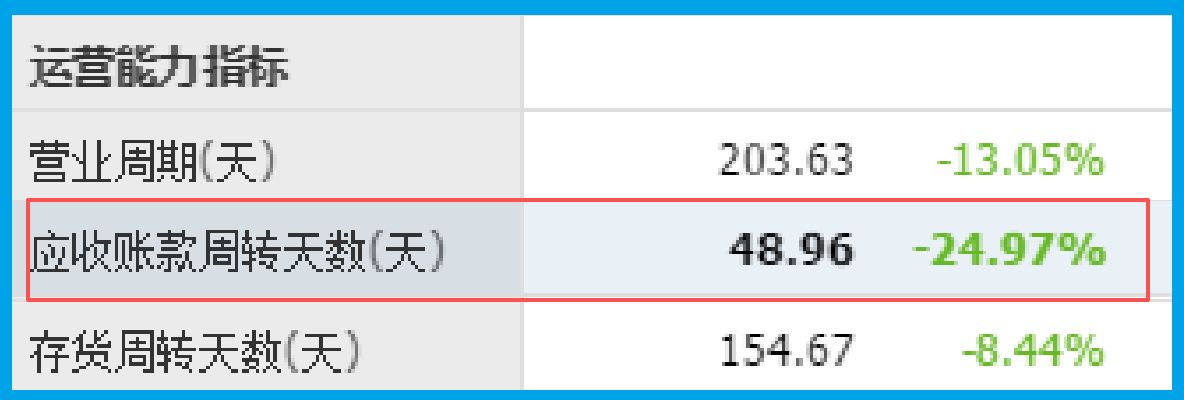 第三个反差:回款周期49天,同比加速24.97%,阐述公司回款才智大幅进步,资金盘活后果赫然改善。