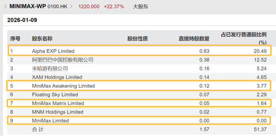 把柄招股书联系信息线路,穿透后,闫俊杰全资捏有MiniMax的第一、第五、第九大激动,此外,在第七大激动中,闫俊杰也领有67.1%职权。