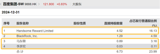表2:李彦宏细君在百度中捏股市值为645亿港元
