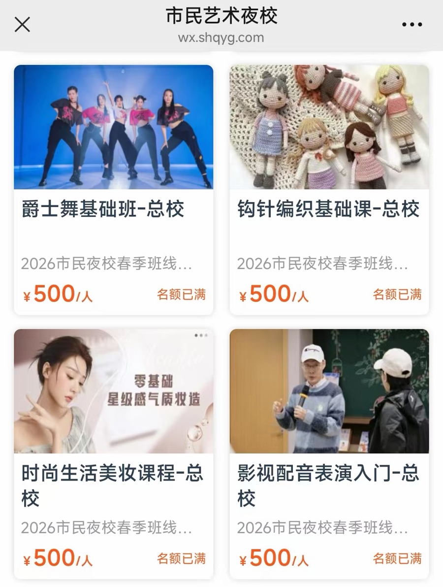 10分钟内569门课程报满,占策划开设一起课程的22%以上——3月7日上昼,上海市民艺术夜校本年春季班火热开启报名,再次激发庸俗护理。