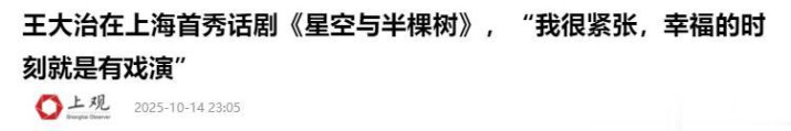 上不雅新闻——王大治在上海首秀话剧《星空与半棵树》,“我很病笃,幸福的技能等于有戏演”
