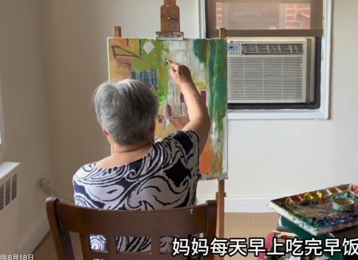 在好意思国豪宅中,母亲最大的乐趣即是待在画室画画,释怀创作。